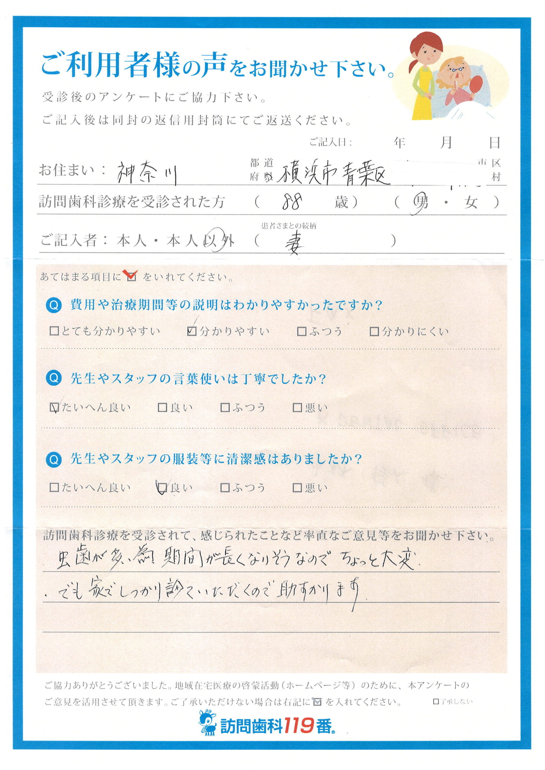 神奈川県横浜市 88歳 男性回答者:妻 回答日:2025.12相談内容