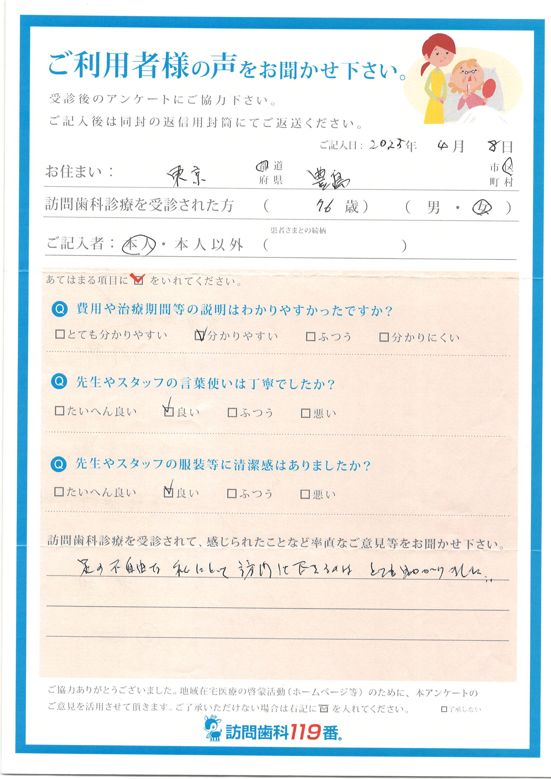 東京都板橋区 69歳 男性回答者:夫 回答日:2025.12.3相談内容