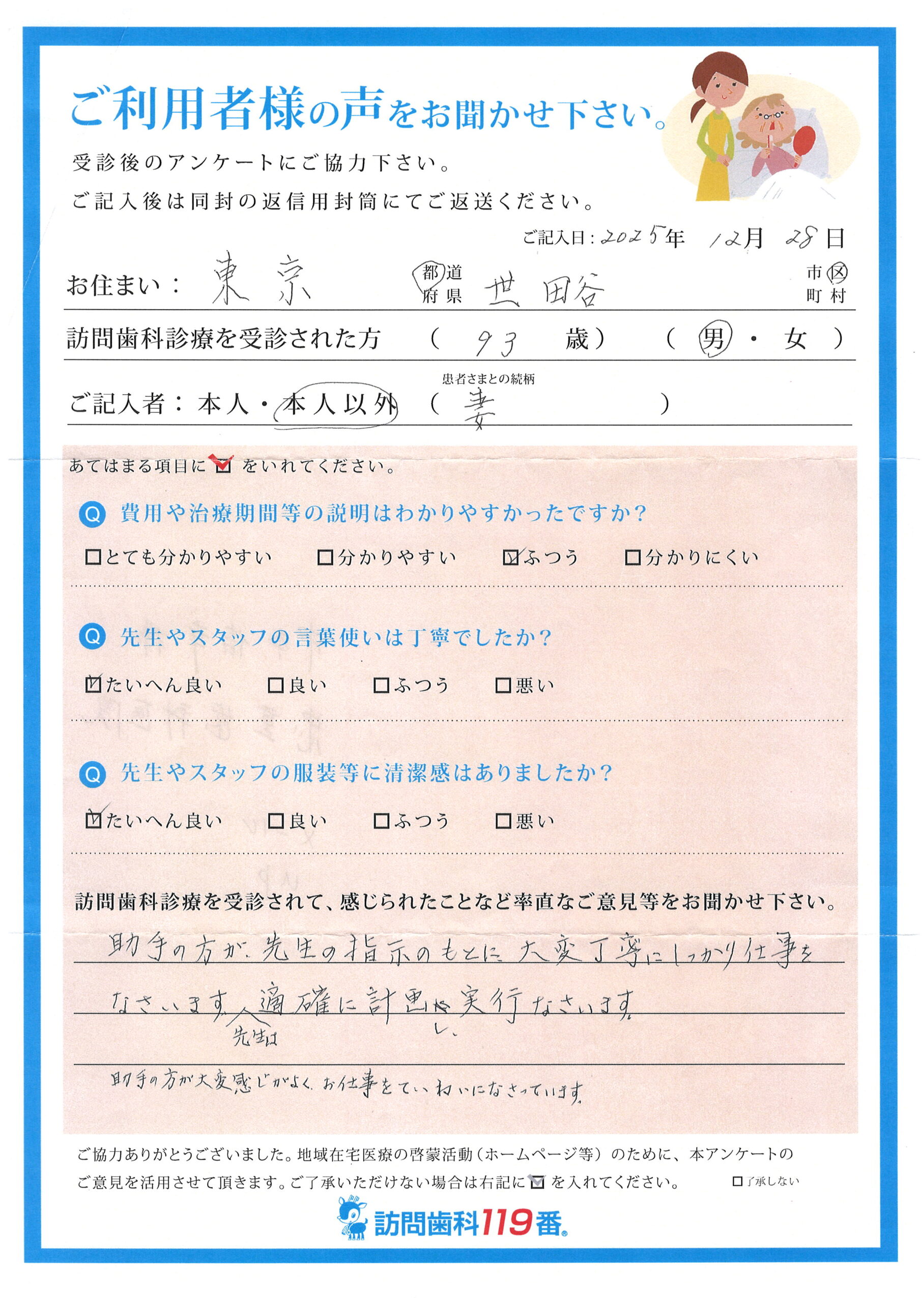 東京都世田谷区 93歳 男性回答者:妻 回答日:2025.12.28相談内容