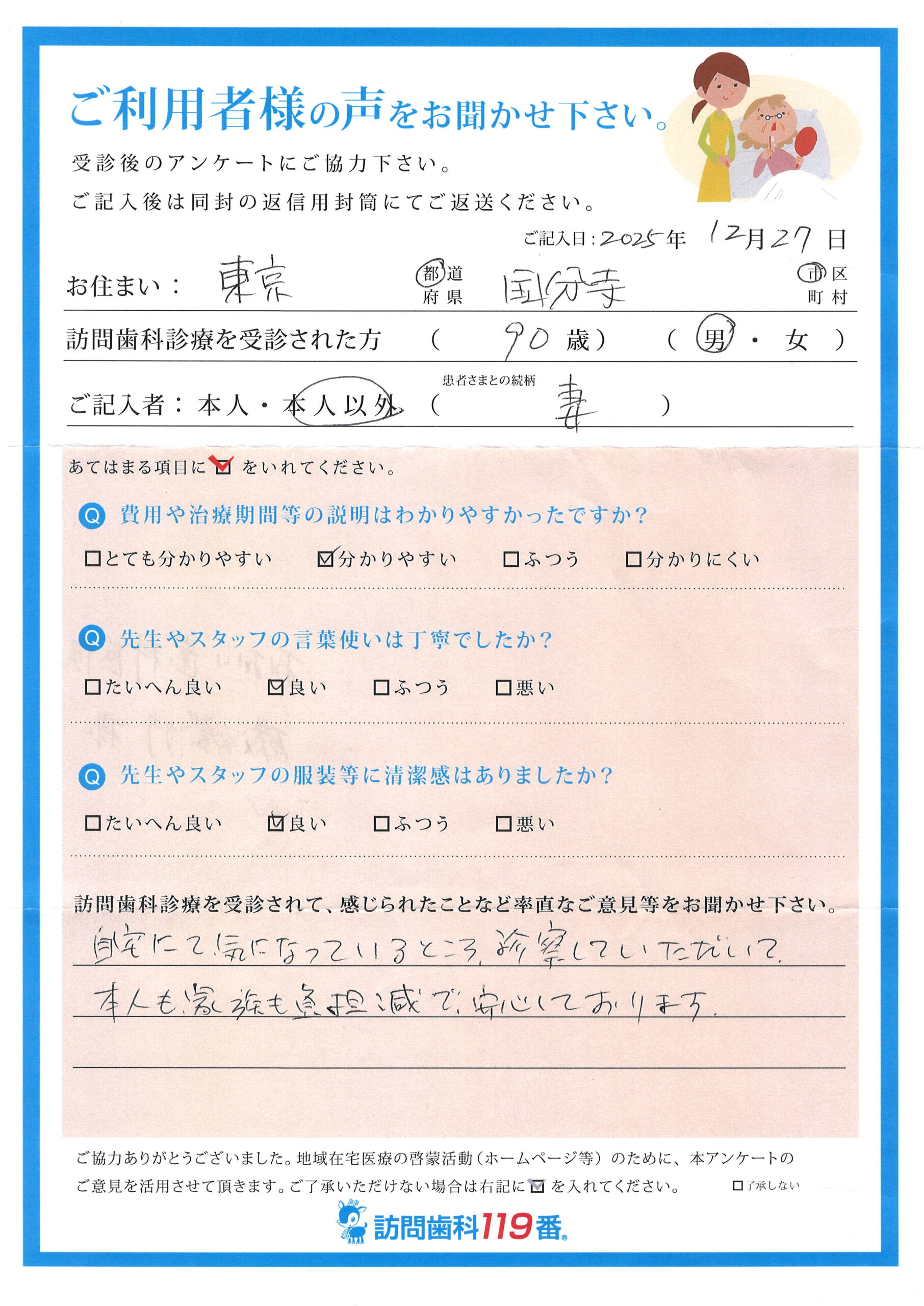 東京都国分寺市 90歳 男性回答者:妻 回答日:2025.12.27相談内容