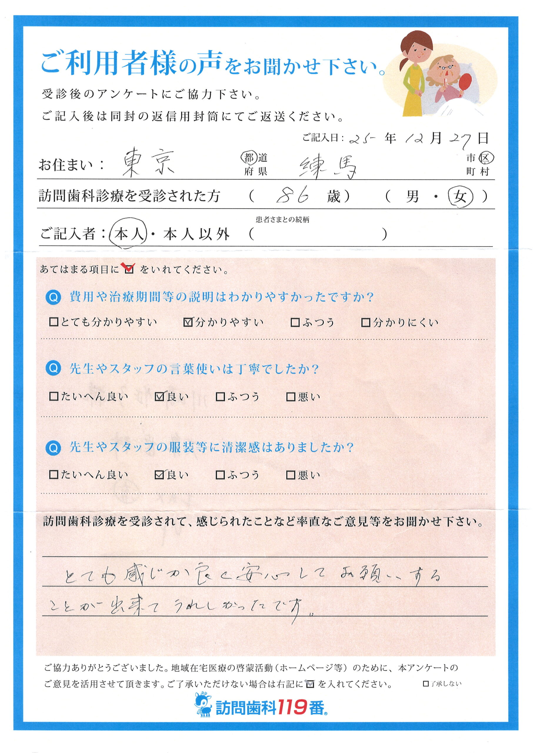 東京都練馬区 86歳 女性回答者:ご本人様 回答日:2025.12.27相談内容
