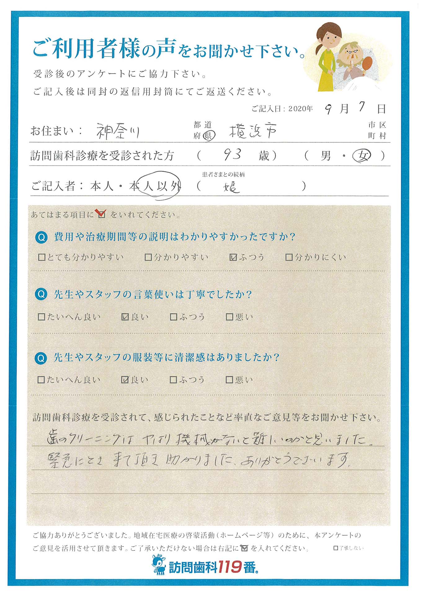 実際に訪問歯科診療を受診されたご利用者さまの声をご紹介させていただきます。