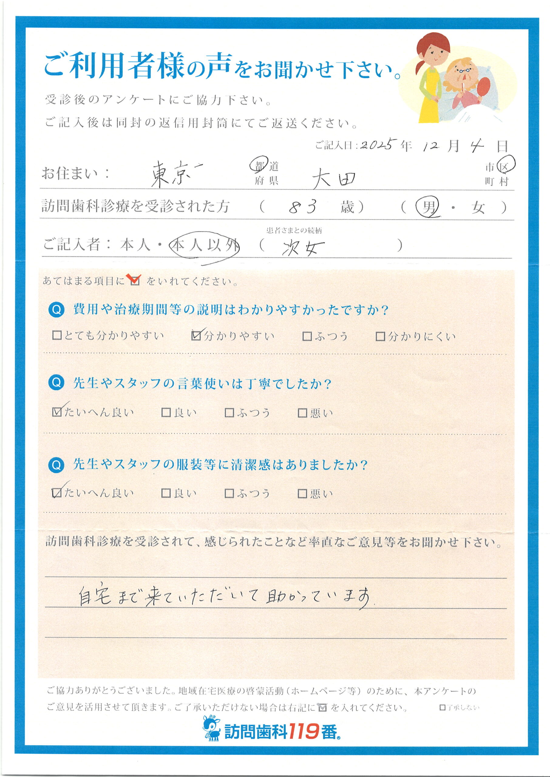 東京都大田区 83歳 男性回答者:次女 回答日:2025.12.4相談内容