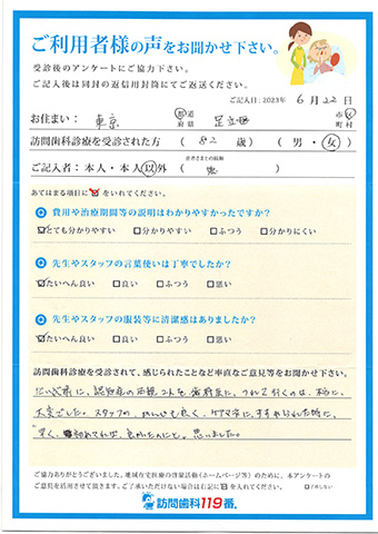 実際に訪問歯科診療を受診されたご利用者さまの声をご紹介させていただきます。