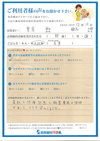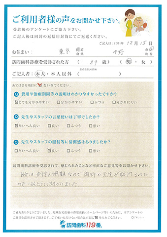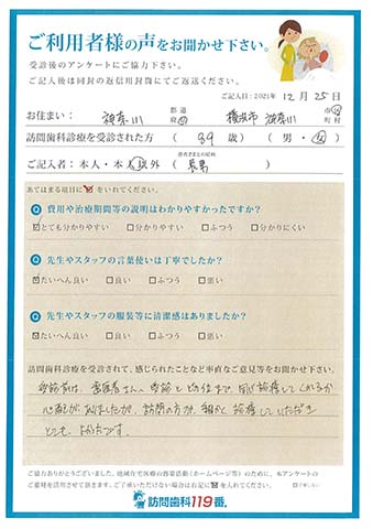 実際に訪問歯科診療を受診されたご利用者さまの声をご紹介させていただきます。