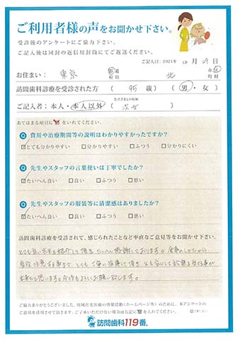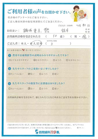 実際に訪問歯科診療を受診されたご利用者さまの声をご紹介させていただきます。