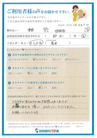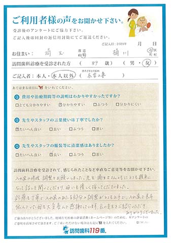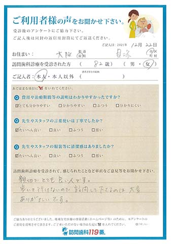 実際に訪問歯科診療を受診されたご利用者さまの声をご紹介させていただきます。
