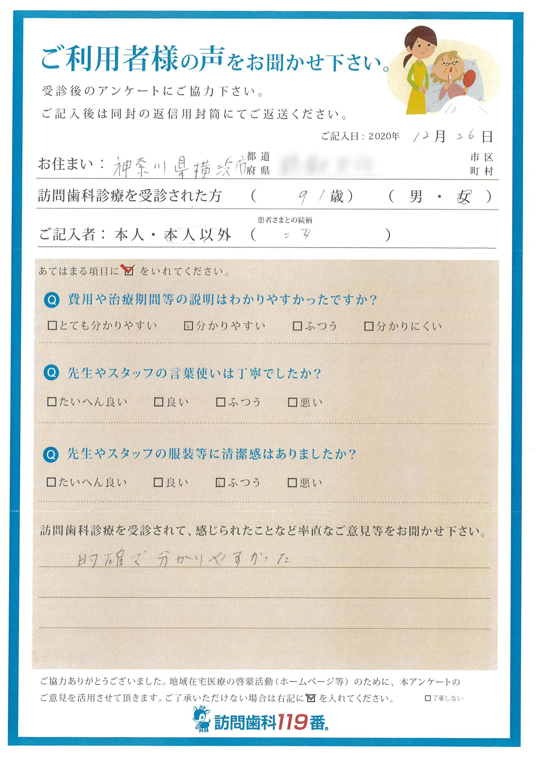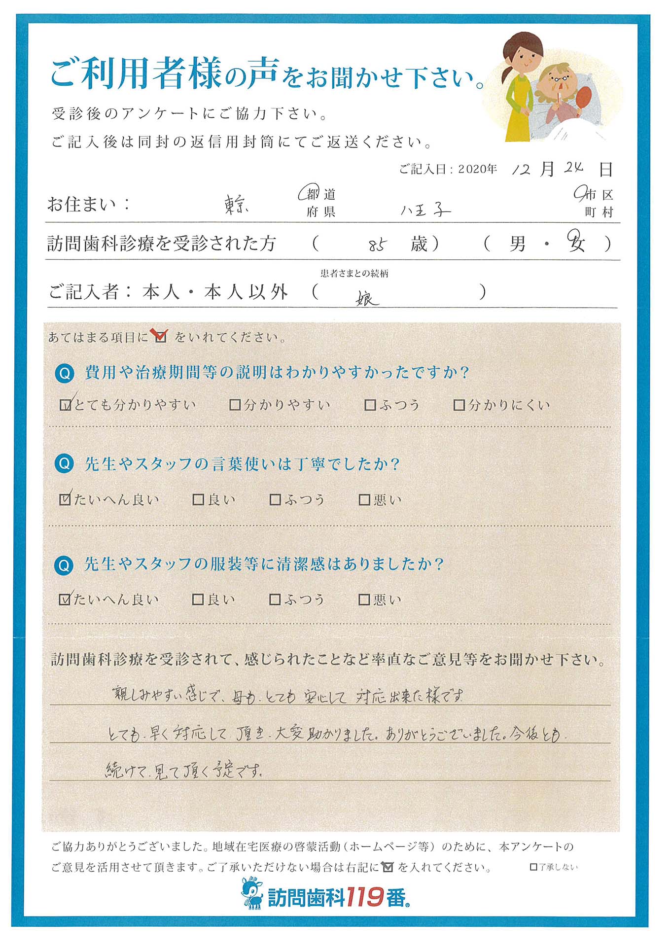 実際に訪問歯科診療を受診されたご利用者さまの声をご紹介させていただきます。
